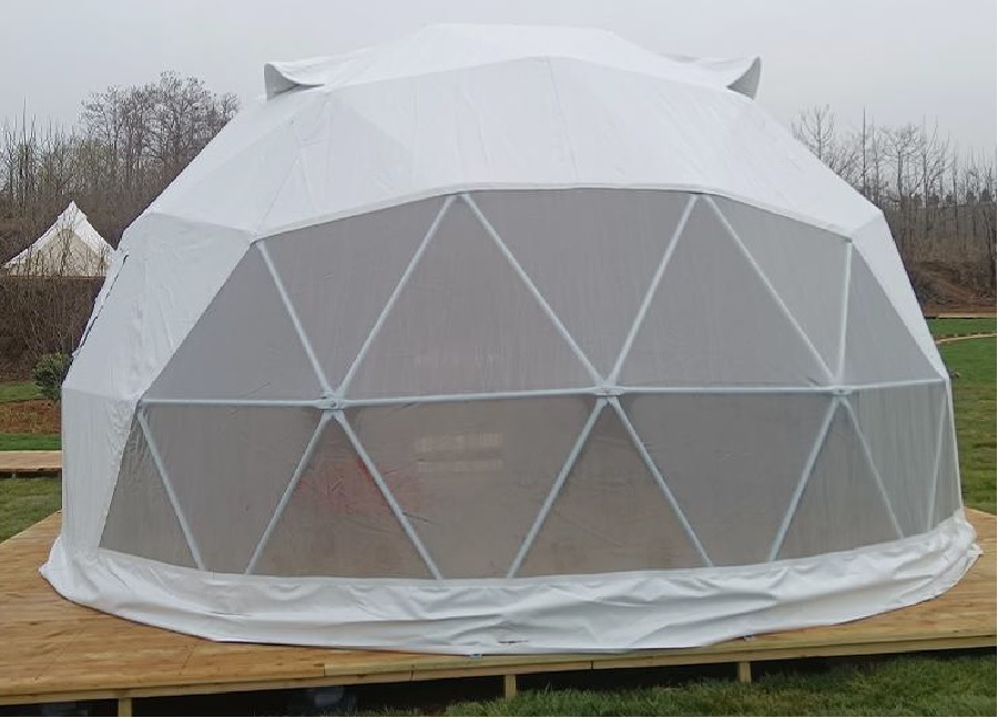 REXWOOD Escape Pod 8 MT is geodesic dome design with diameter of 8 meters; 50.24 square meters and top height of 4.5 meters.